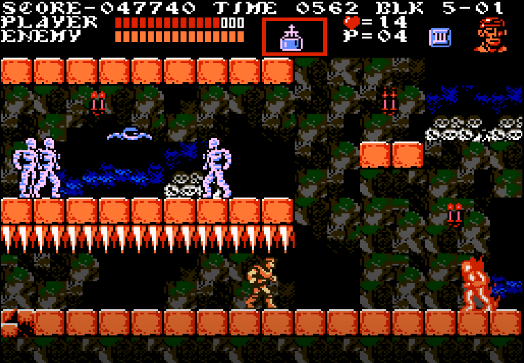 Na época que fora lançado, tais palavras poderiam estar escritas em sua capa assim como estão nos portões do inferno descritos em A Divina Comédia de Dante Alighieri. Pois sua dificuldade, mesmo hoje em dia, não é algo a se negligenciar. Chegando até mesmo a ter certas características em comum com os jogos de hoje em dia que se chamam de “Souls-like”. Isso se dá, muito por conta de suas mecânicas, que para aqueles já acostumados a jogos mais modernos, seus controles não são dinâmicos e precisos como Hollow Knight, ou seus filhos, fazendo disso um dos motivos de sua jogabilidade ser considerada ultrapassada. Em Castlevania I, Simon, pode pular neutro e para os direcionais, ações essas que o prendem a uma animação que não pode ser cancelada e possuem um arco fixo. Seus comandos não são imprecisos, o problema maior é o arco de pulo fixo, que geram certa dificuldade em suas fases de plataforma, postas juntamente com inimigos voadores. Gerando assim, um desafio considerável, e em alguns momentos frustrante. Ainda mais por conta de seus inimigos, que não existem tantos, mas muitos deles são difíceis de se lidar, principalmente aqueles que pulam, voam ou flutuam em zigue-zague pela tela, dificultando muito conseguir alcança-los (que vontade de arrancar meus olhos com as mãos, p*** que p****). Ou minha reclamação pode ser simplesmente falta de competência de minha parte, depois de jogar me diga se falo a verdade.